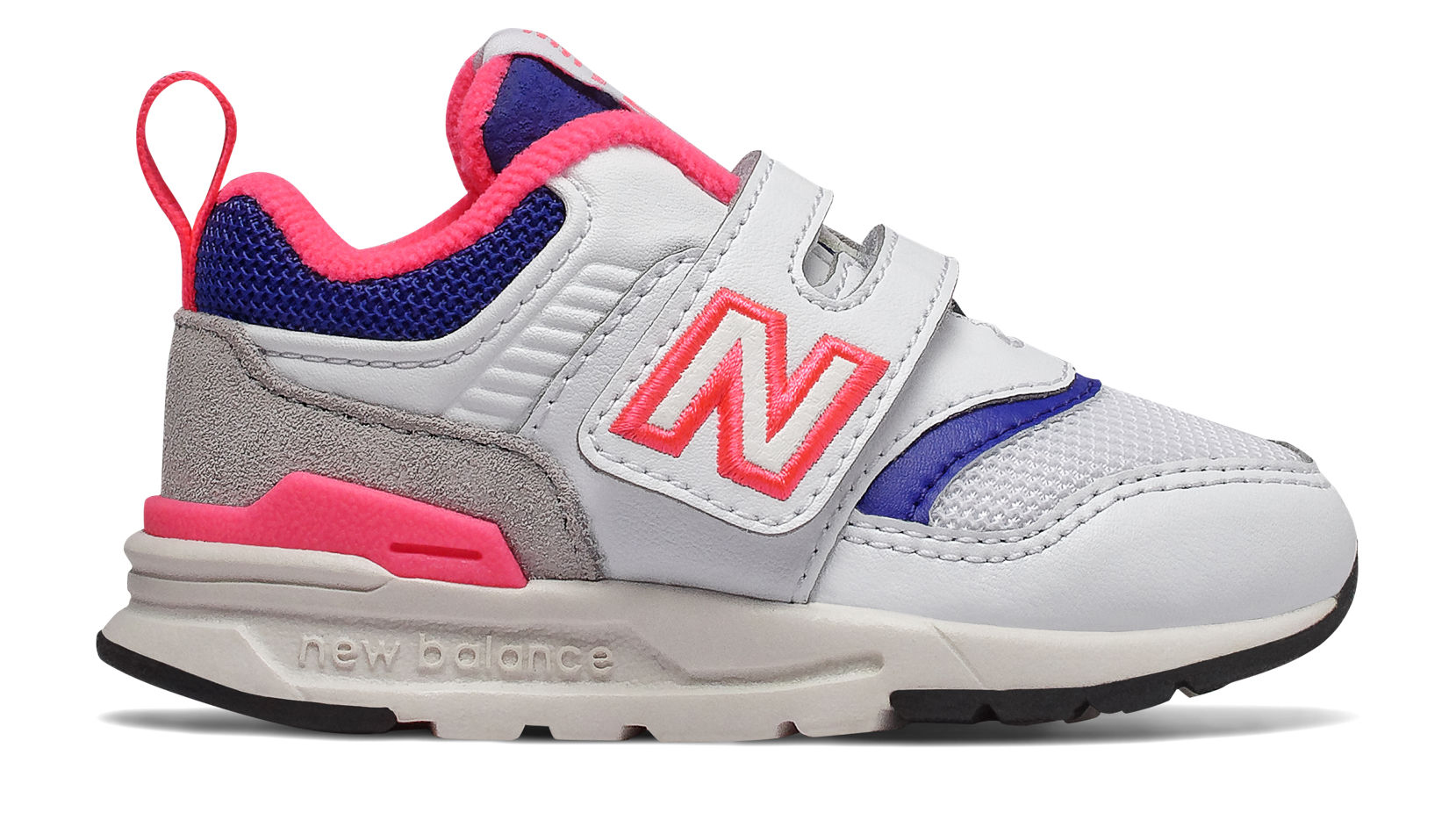 The infants’ 997 sneaker is inspired by a popular Made in the USA model for adults. The result offers a cool heritage silhouette made in sturdy materials to support active feet.