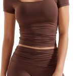- Flattering Fit Casual Outfits: Sexy square neck top is designed to enhance the waistline, providing a slim effect. The fold-over shorts offer a chic and fashionable look