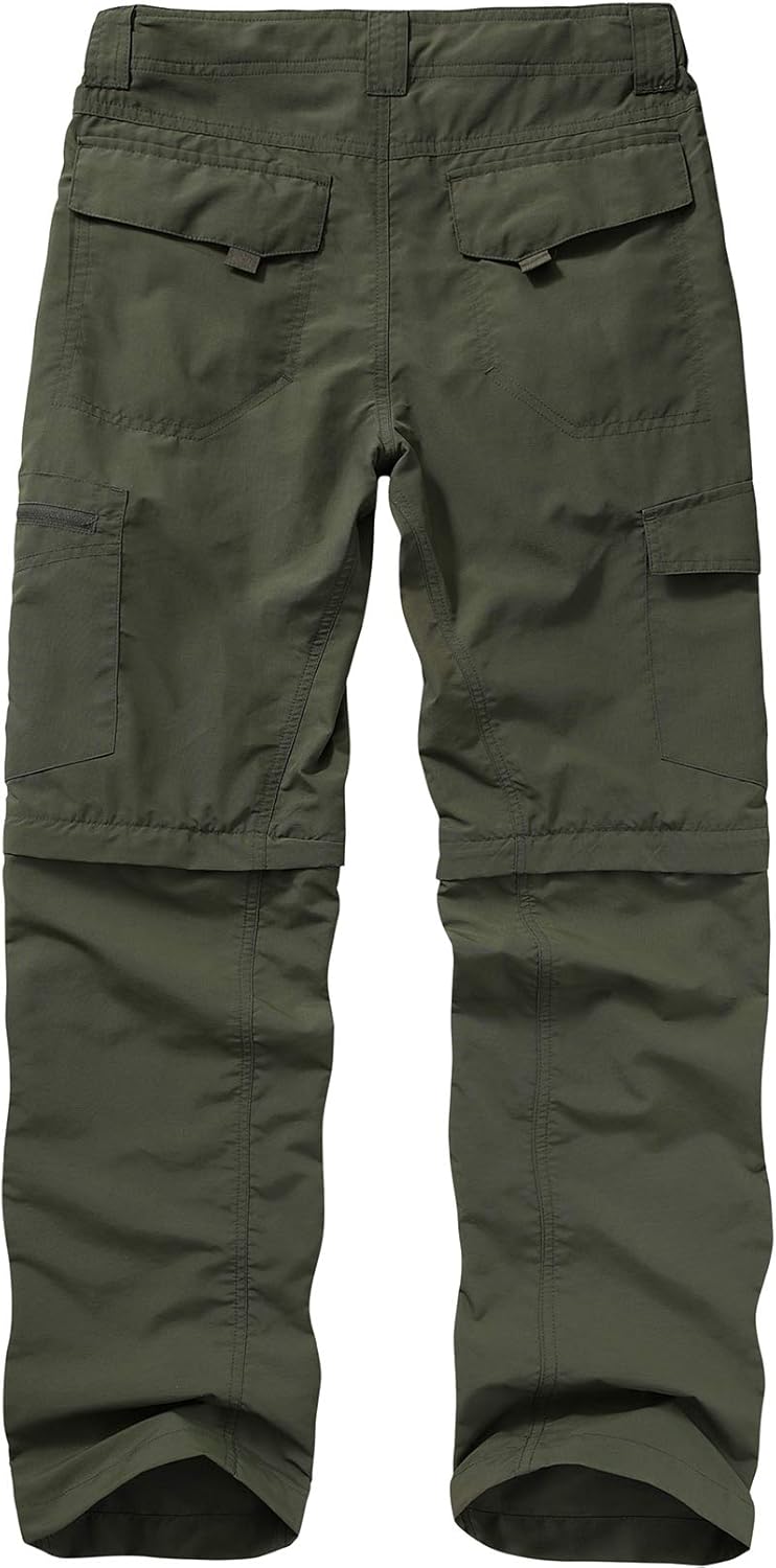 - Mens hiking pant convertible quick dry: Featured with 6 pockets for maximum storage capacity. 2 slash pockets, 2 thigh cargo pockets, 2 hook & loop back pockets, combines mesh pocket lining for ultimate convenience and breathability. Partial elastic waistband with belt loops, additional detachable webbing belt with buckle for customized personal fit. Quality SBS zipper closure and metal button provide the hiking pants max durability and security.