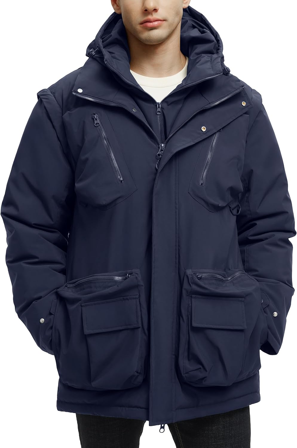 Men’s Winter Coats Warm Water Resistant Puffy Hooded Windbreaker Insulated Parka Jackets with Removable Hood