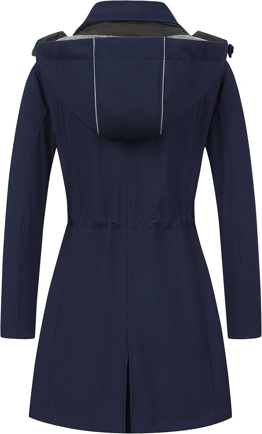 - ⭐Windproof Warm Jacket: The tight weave and water-repellent durable fabric.Lined with polar fleece to be extra soft and skin-friendly.The length keep me plenty warm and comfortable.Blocks the wind and isn’t too warm while being active.This softshell long jacket with reflective strip detachable hood(keep you well protected in rainy and windy day)